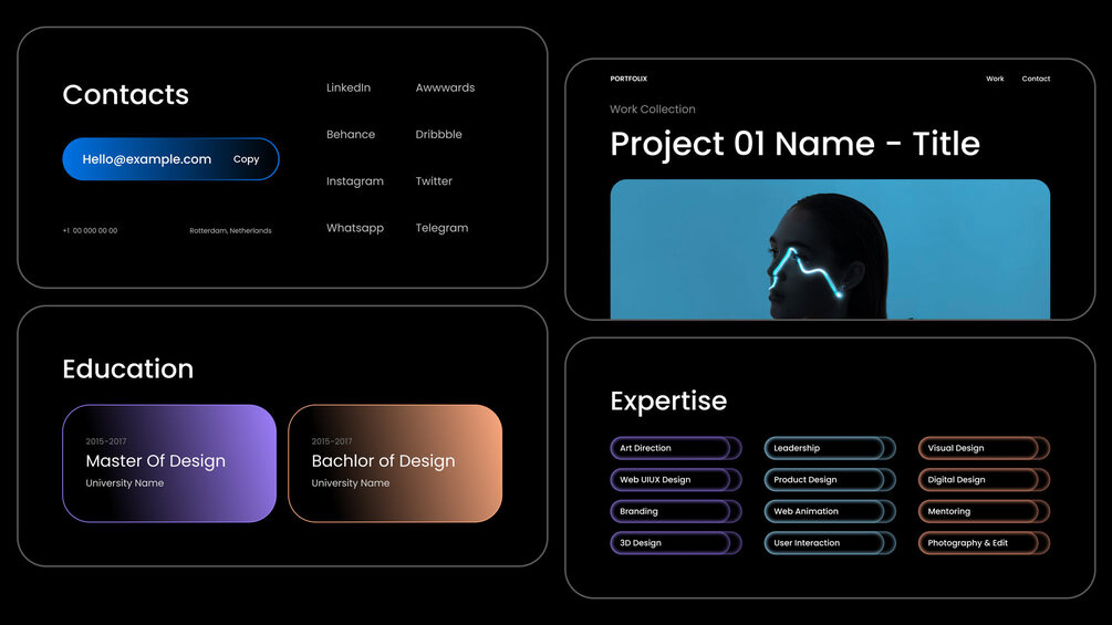 The Premium Portfolix Portfolio Resume Website Template is the perfect solution for anyone looking to create a standout online presence that showcases their professional skills and accomplishments in a modern and visually appealing way. With our customizable No Code website template, you can easily edit and customize your site to meet your needs and impress potential employers.